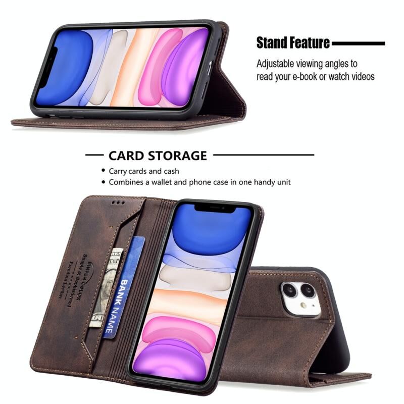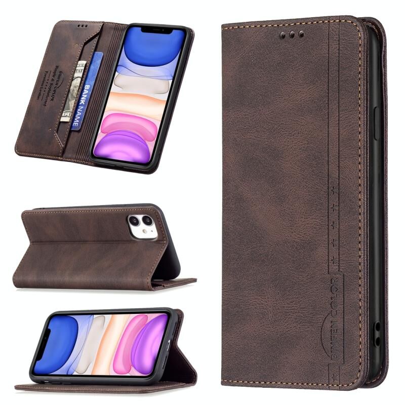 For iPhone 11 Magnetic RFID Blocking Anti-Theft Leather Case with Holder & Card Slots & Wallet (Brown)