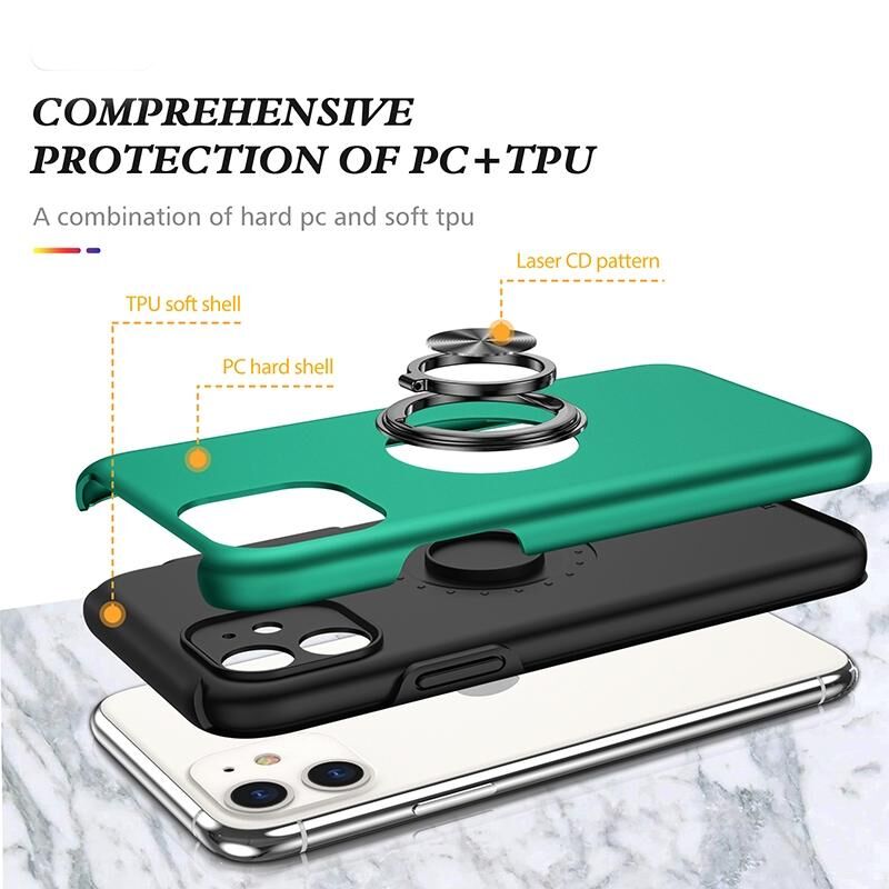 Θήκη κινητού τηλεφώνου με μαγνητικό δακτύλιο και στήριξη για iPhone 11, ανθεκτική στις κρούσεις (Μαύρο)