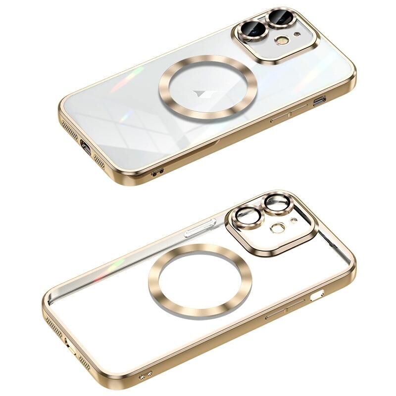 For iPhone 11 MagSafe CD Texture Metal Lens Frame Full Coverage Phone Case(Gold)