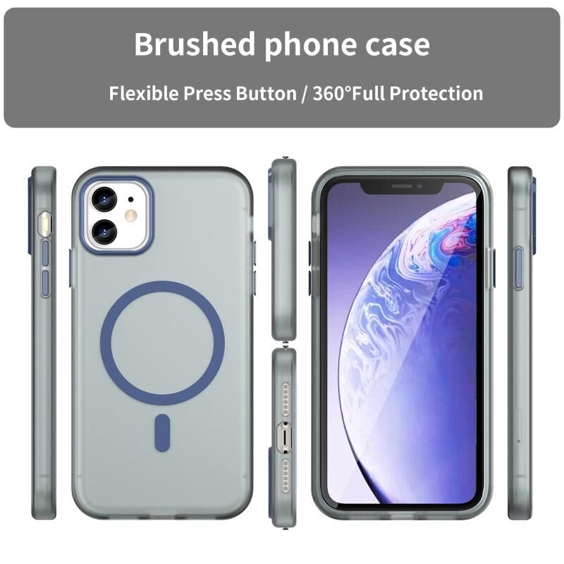 For iPhone 11 MagSafe Frosted Translucent TPU + PC Full Coverage Phone Case(Dark Blue)