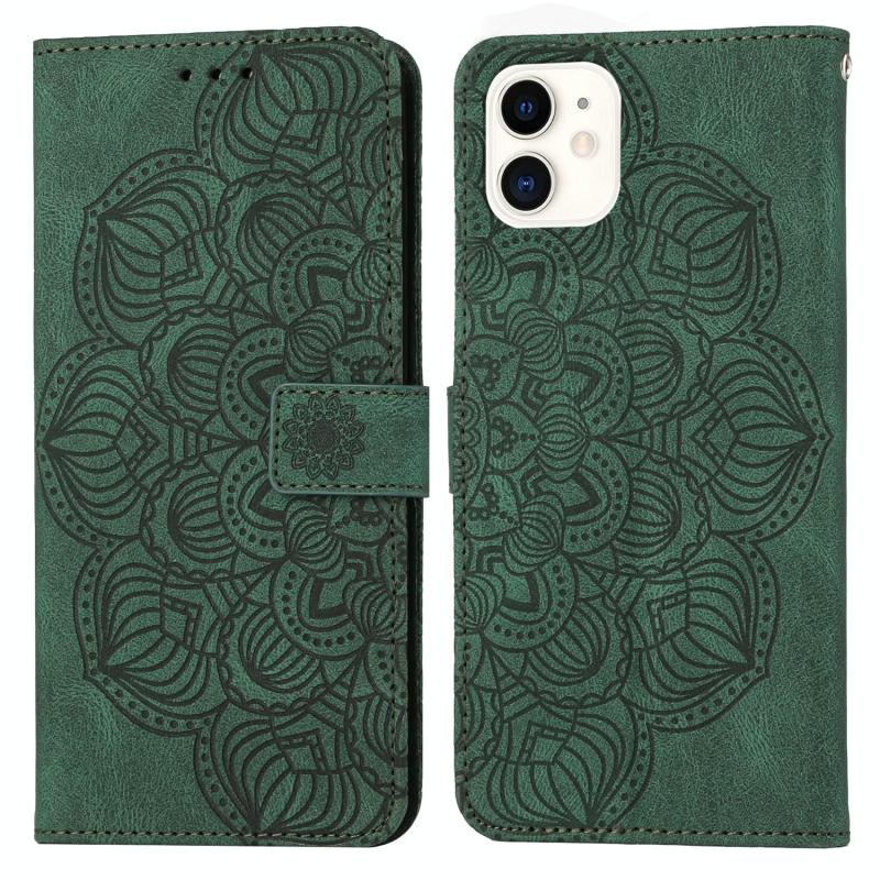 For iPhone 11 Mandala Embossed Flip Leather Phone Case (Green)