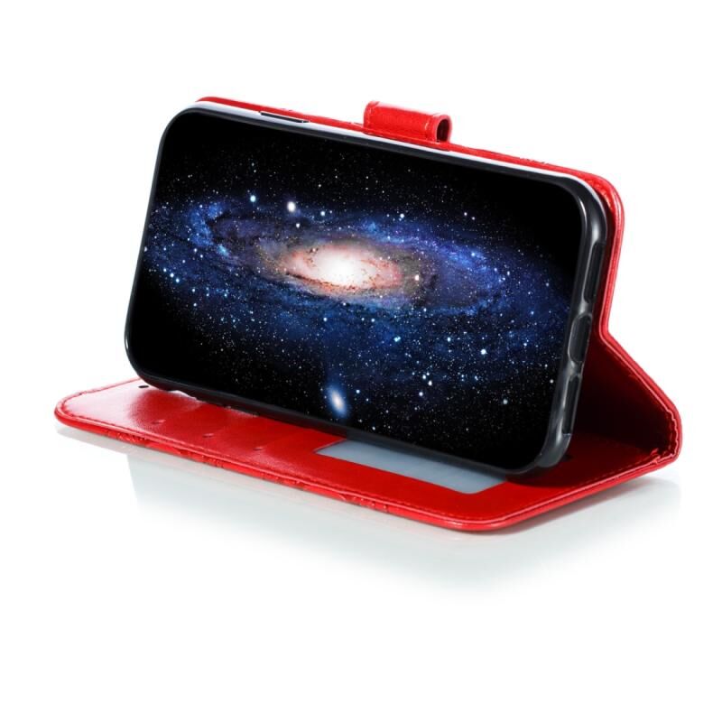 Θήκη για iPhone 11, δερμάτινη, οριζόντια, με σχέδιο Mandala σε ανάγλυφο, με βάση, θήκες για κάρτες, πορτοφόλι, κορνίζα φωτογραφιών & λουρί (Κόκκινο)