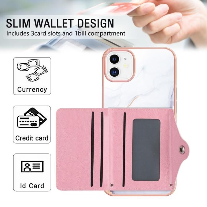 For iPhone 11 Marble Pattern IMD Card Slot Phone Case(White Purple)