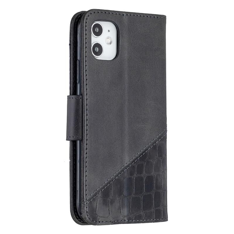 For iPhone 11 Matching Color Crocodile Texture Horizontal Flip PU Leather Case with Wallet & Holder & Card Slots(Black)