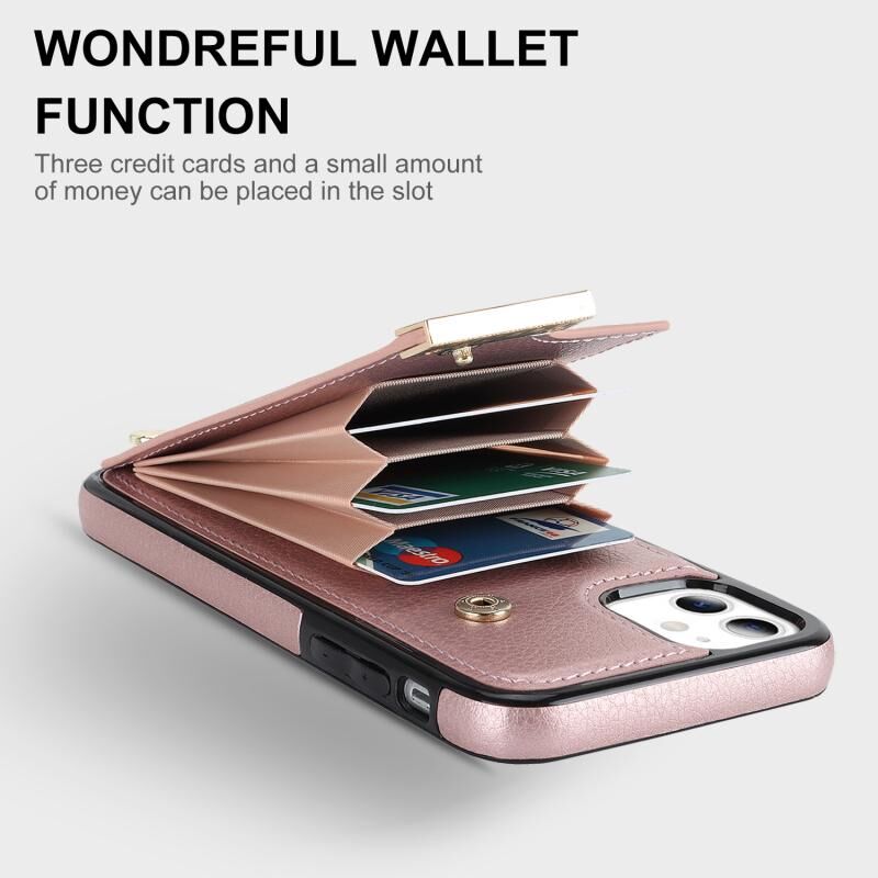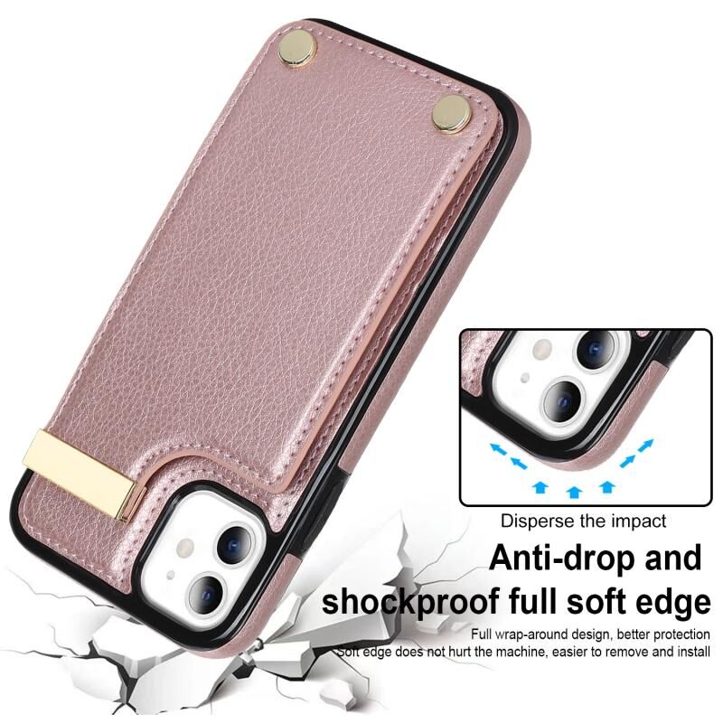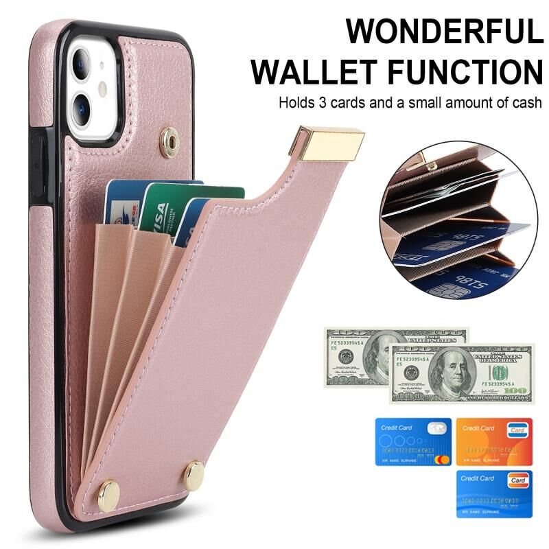 For iPhone 11 Metal Buckle Card Slots Phone Case(Rose Gold)
