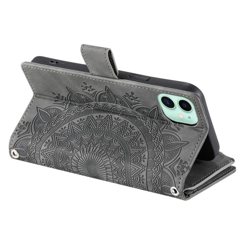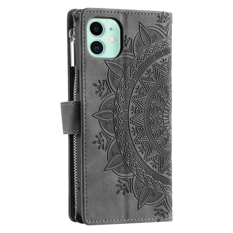 For iPhone 11 Multi-Card Totem Zipper Leather Phone Case(Grey)