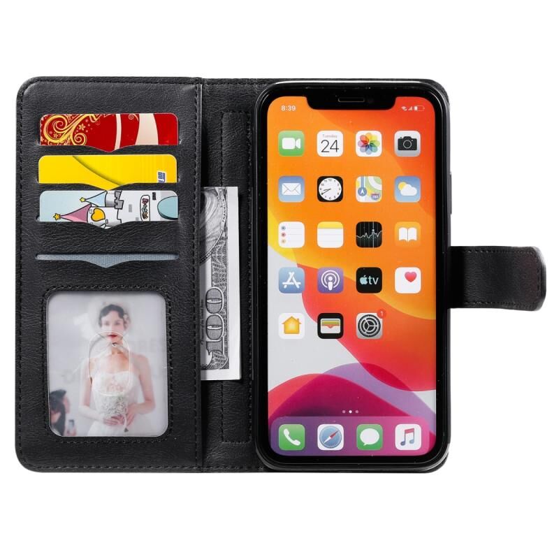 Θήκη για iPhone 11, πολυλειτουργική, μαγνητική, με αγκράφα από χαλκό, οριζόντια, μονόχρωμη, από δέρμα, με 10 υποδοχές για κάρτες, πορτοφόλι, βάση στήριξης & κορνίζα φωτογραφιών (Μαύρο)