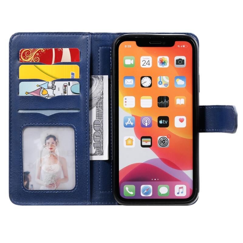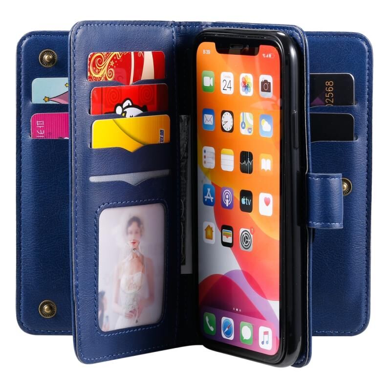 Θήκη για iPhone 11, πολυλειτουργική, μαγνητική, με αγκράφα από χαλκό, οριζόντια, μονόχρωμη, από δέρμα, με 10 υποδοχές για κάρτες, πορτοφόλι, βάση στήριξης & κορνίζα φωτογραφιών (Κρασί)