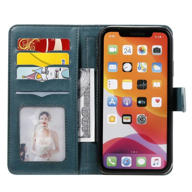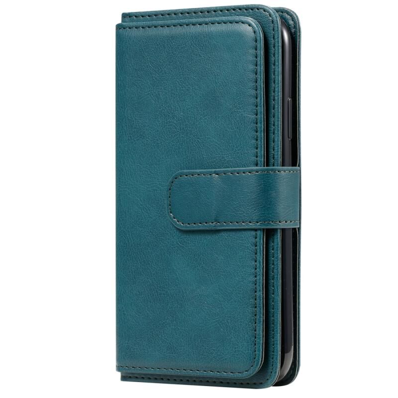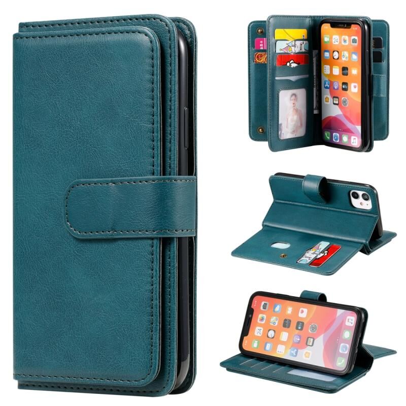 Θήκη για iPhone 11, πολυλειτουργική, μαγνητική, με αγκράφα από χαλκό, οριζόντια, μονόχρωμη, από δέρμα, με 10 υποδοχές για κάρτες, πορτοφόλι, βάση στήριξης & κορνίζα φωτογραφιών (Κρασί)
