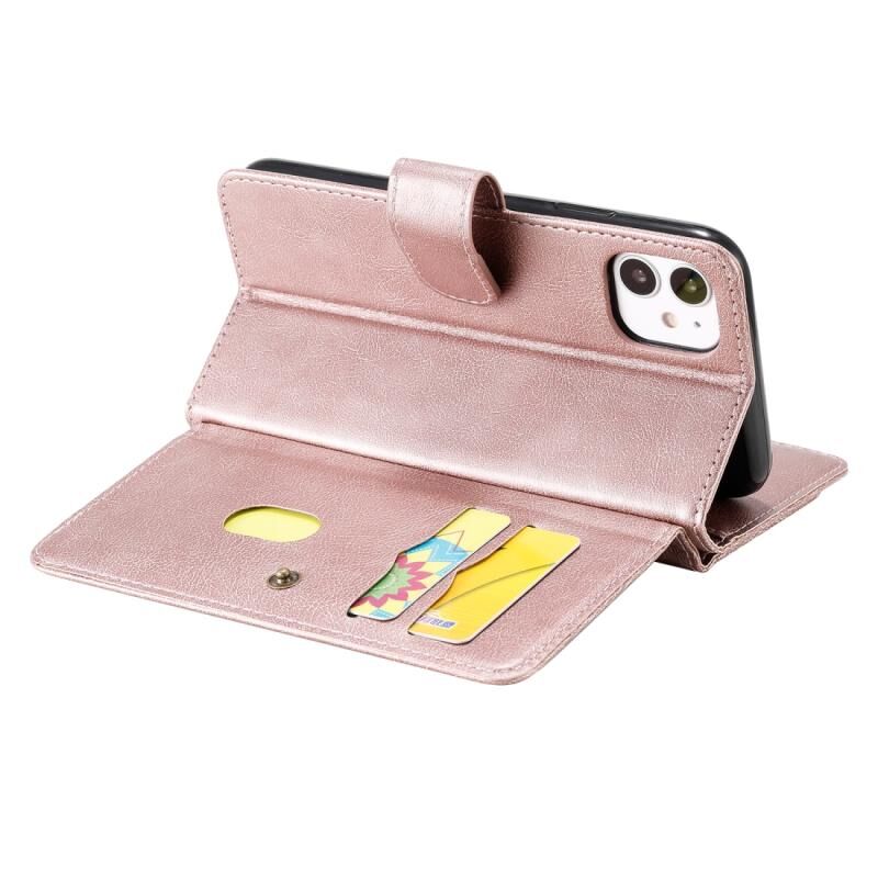Θήκη για iPhone 11, πολυλειτουργική, μαγνητική, με αγκράφα από χαλκό, οριζόντια, μονόχρωμη, από δέρμα, με 10 υποδοχές για κάρτες, πορτοφόλι, βάση στήριξης & κορνίζα φωτογραφιών (Κρασί)