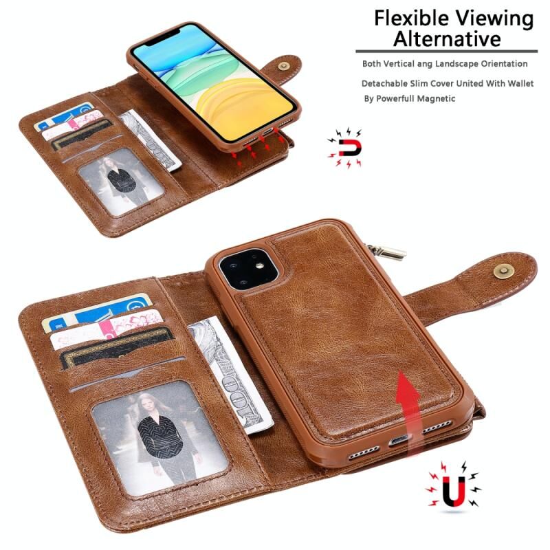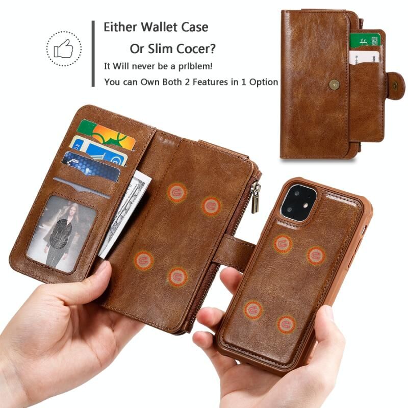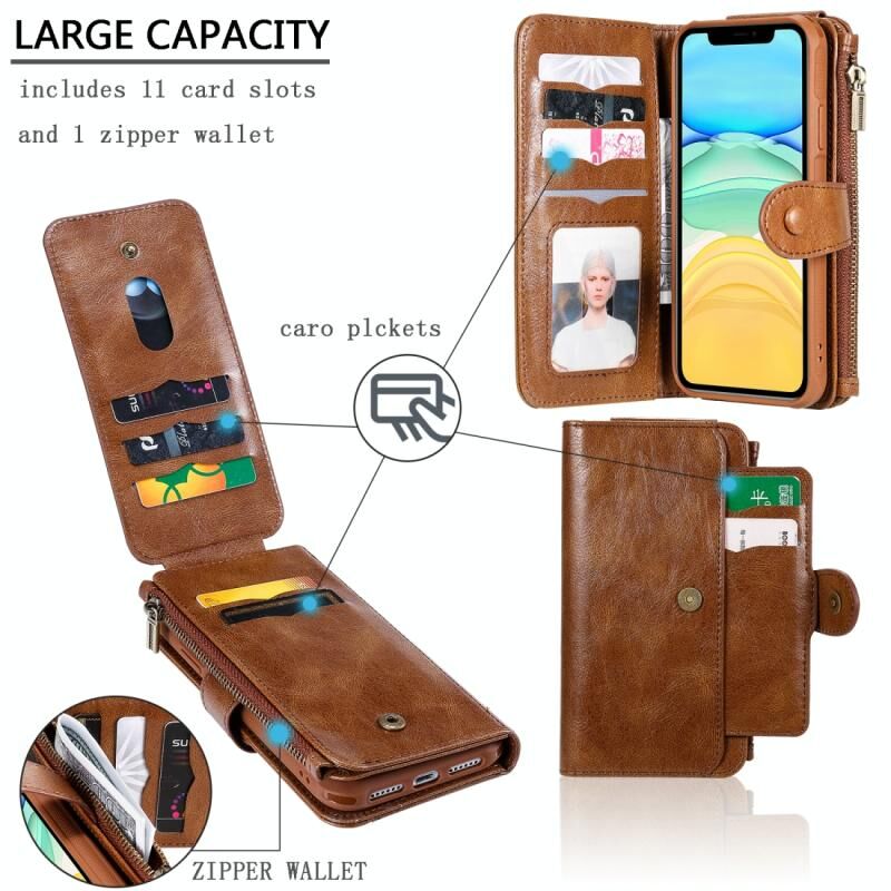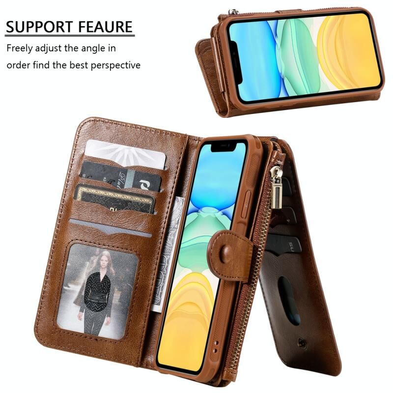 For iPhone 11 Multifunctional Retro Detachable Magnetic Horizontal Flip Leather Case with Card Slots & Holder & Wallet & Photo Frame(Brown)