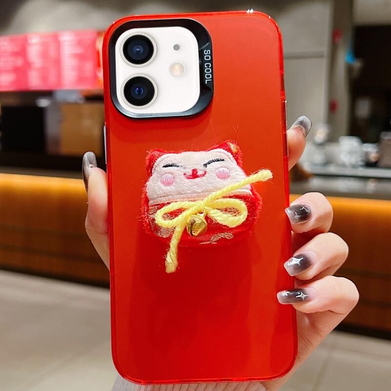 For iPhone 11 New Year Lion Dance Plush Doll Phone Case(Lucky Cat)