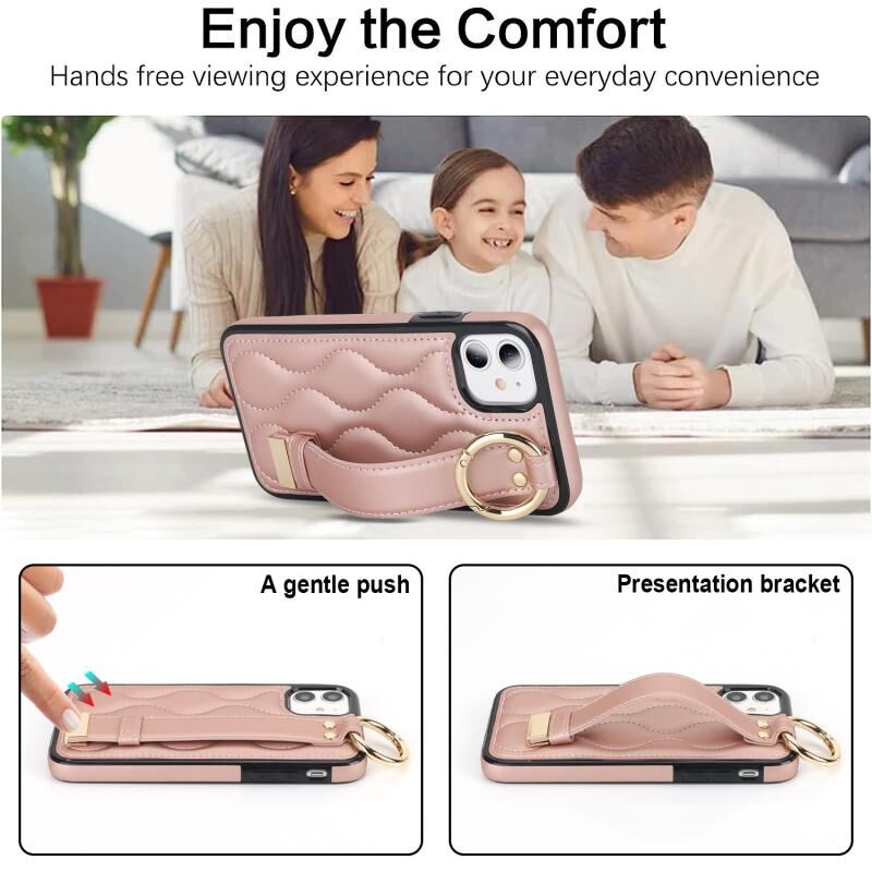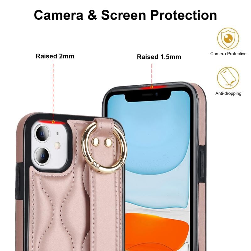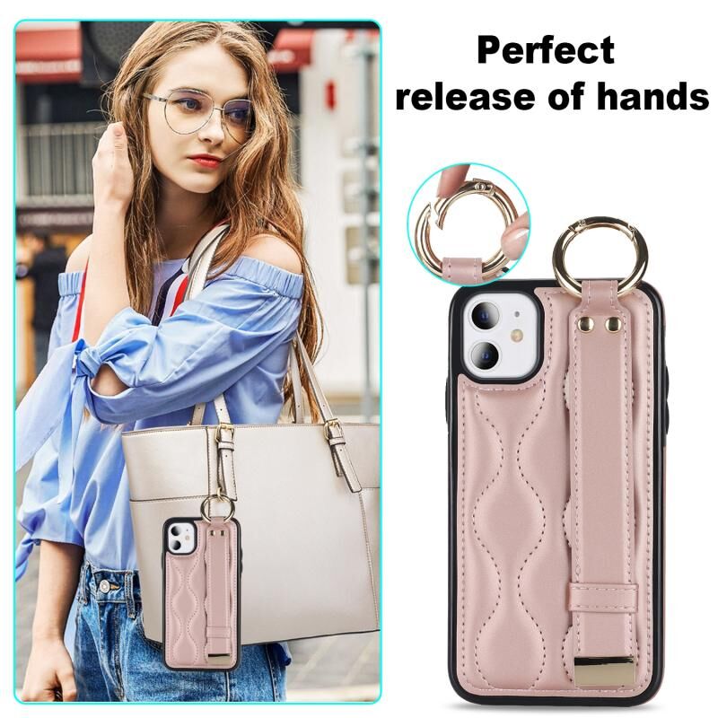 2. The back of the phone case has a freely stretchable band, which is fixed by a solid metal nail and being a kickstand which is good for moving.
