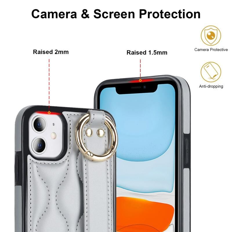 For iPhone 11 Non-slip Full Coverage Ring PU Phone Case with Wristband(Silver)