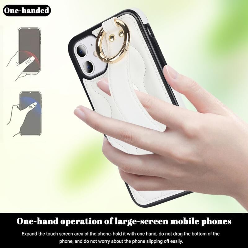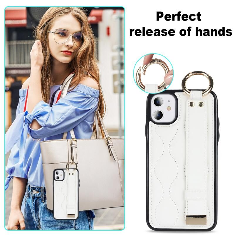 For iPhone 11 Non-slip Full Coverage Ring PU Phone Case with Wristband(White)