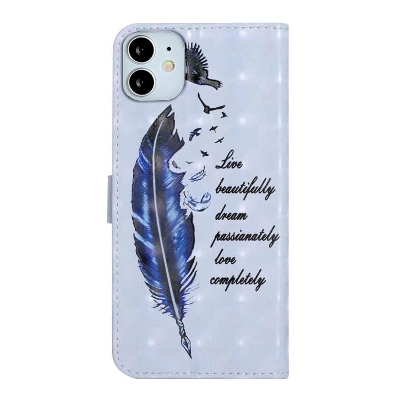 Θήκη τηλεφώνου δερμάτινη με ανάγλυφο σχέδιο λαδιού 3D για iPhone 11 (Μπλε Φτερό)