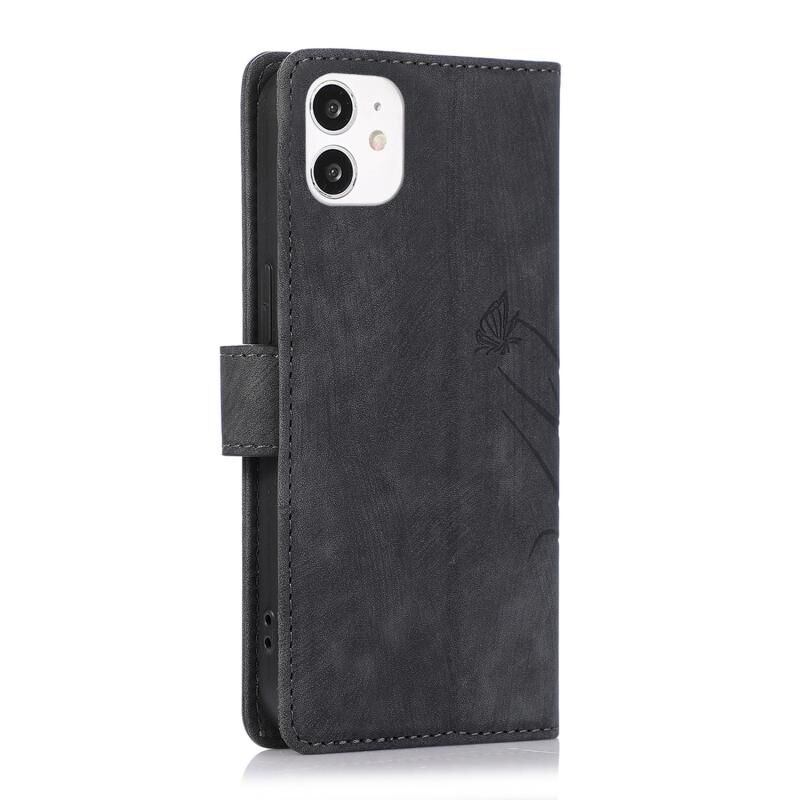 For iPhone 11 Orchid Butterfly Embossed Leather Phone Case(Black)
