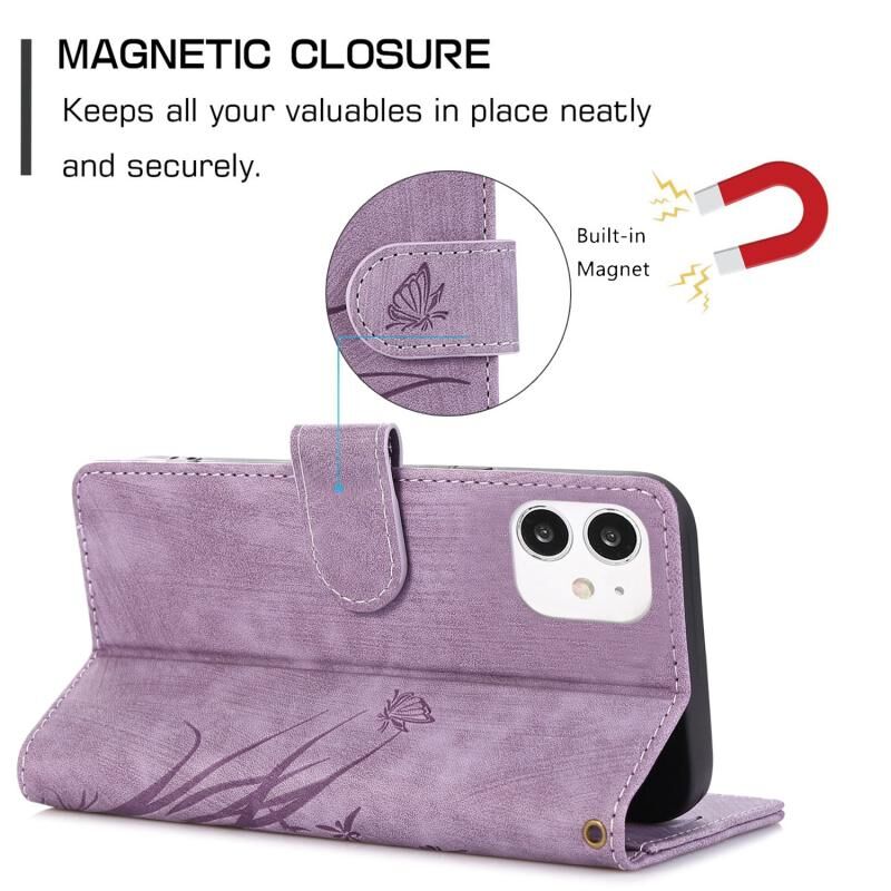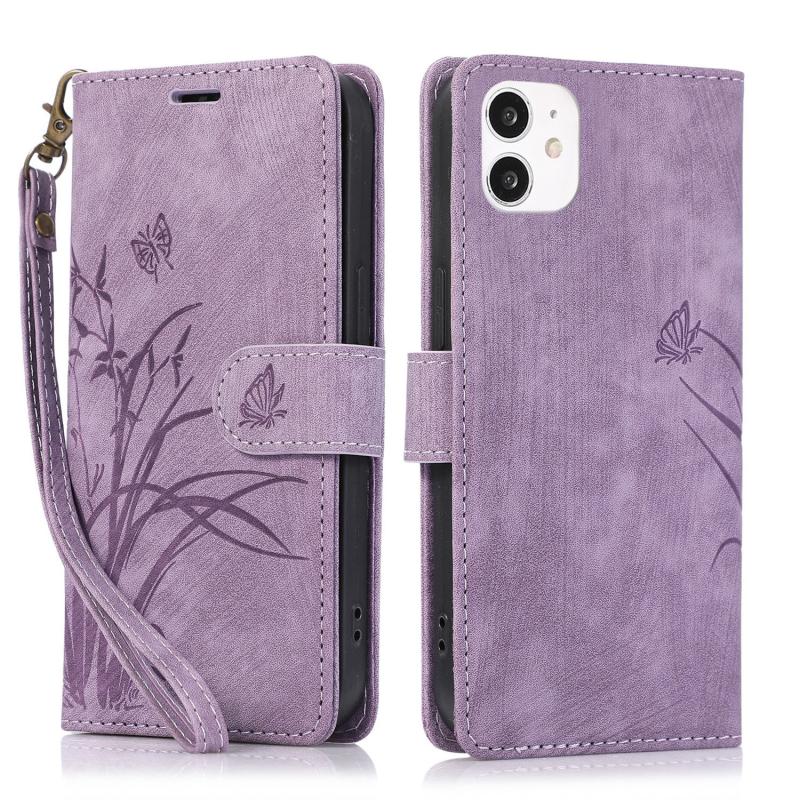 For iPhone 11 Orchid Butterfly Embossed Leather Phone Case(Purple)