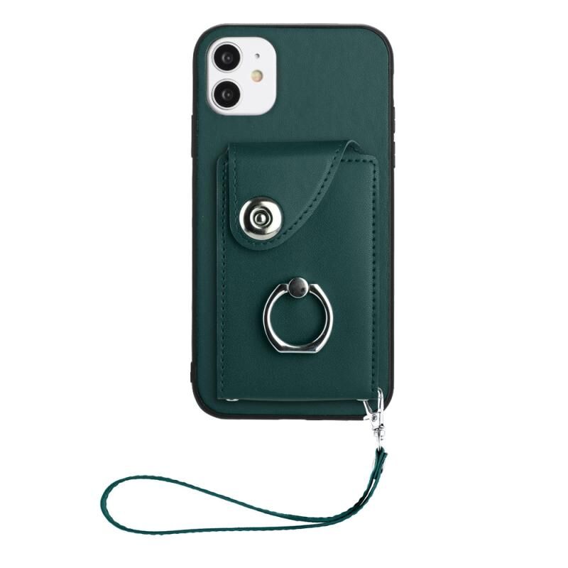 For iPhone 11 Organ Card Bag Ring Holder PU Phone Case with Lanyard(Green)