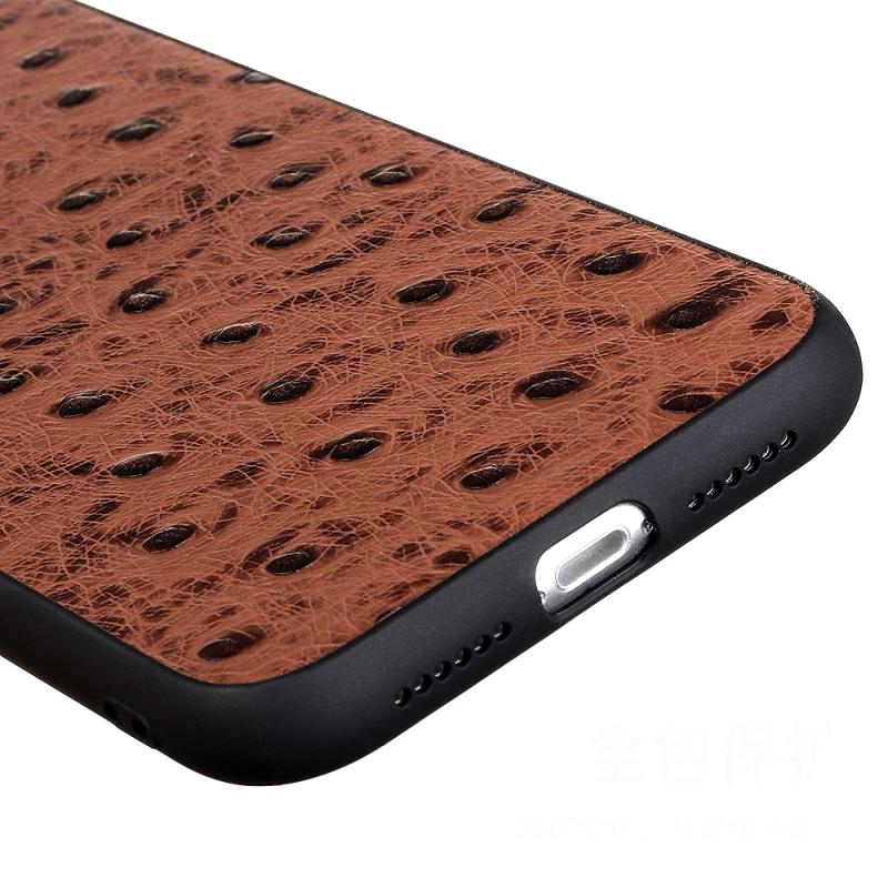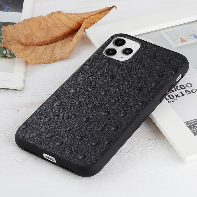 Θήκη προστασίας από γνήσιο δέρμα με υφή στρουθοκάμπου για iPhone 11 (Μαύρο)