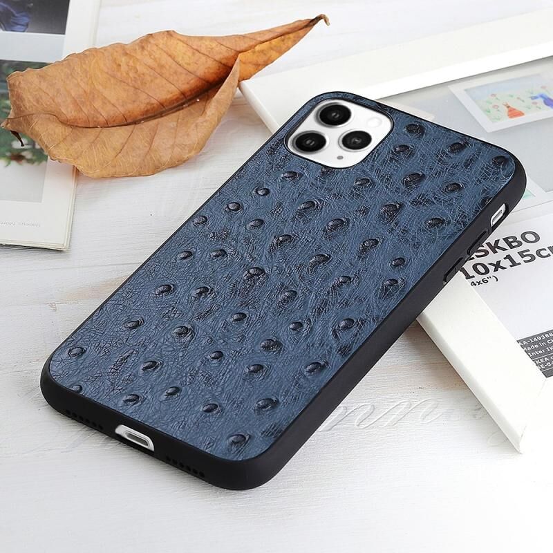 Θήκη προστασίας από γνήσιο δέρμα με υφή στρουθοκάμπου για iPhone 11 (Μπλε)
