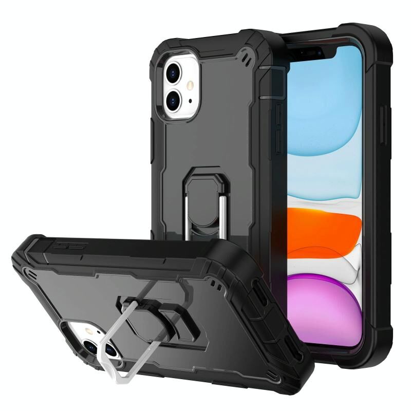 For iPhone 11 PC + Rubber 3-layers Shockproof Protective Case with Rotating Holder (Black)