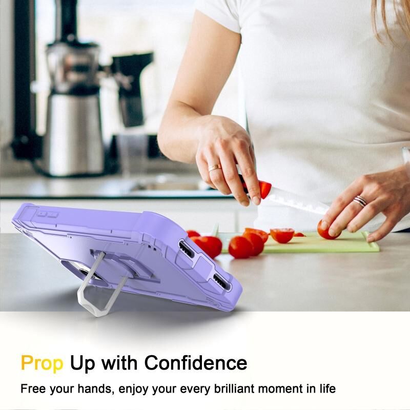 For iPhone 11 PC + Rubber 3-layers Shockproof Protective Case with Rotating Holder (Purple)
