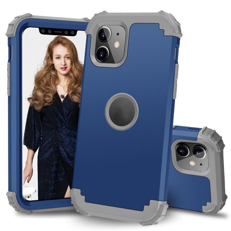 Θήκη προστασίας κινητού τηλεφώνου τριών τεμαχίων PC+Σιλικόνης για iPhone 11, αντι-πτώσης (Μπλε)
