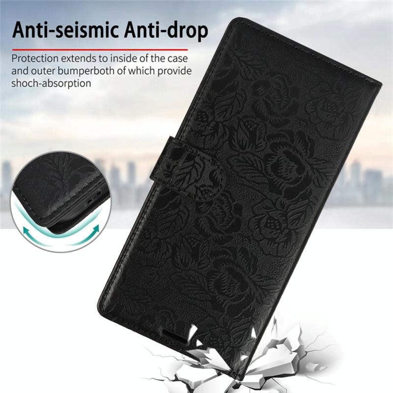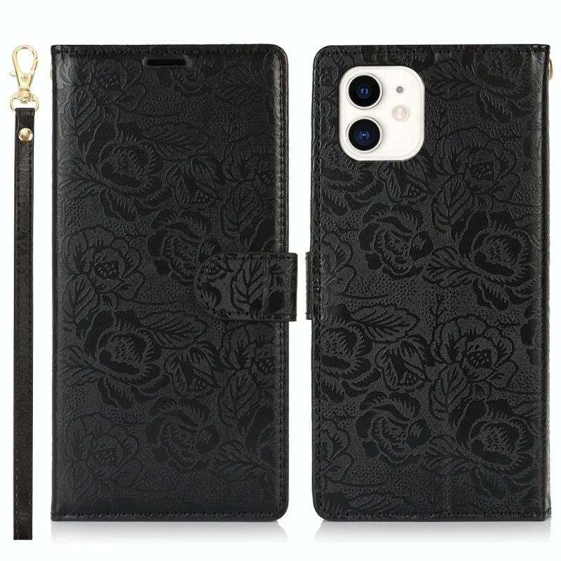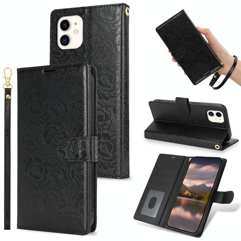 For iPhone 11 Peony Flowers Imprint Leather Phone Case(Black)