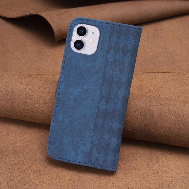 For iPhone 11 Plaid Embossed Leather Phone Case(Blue)