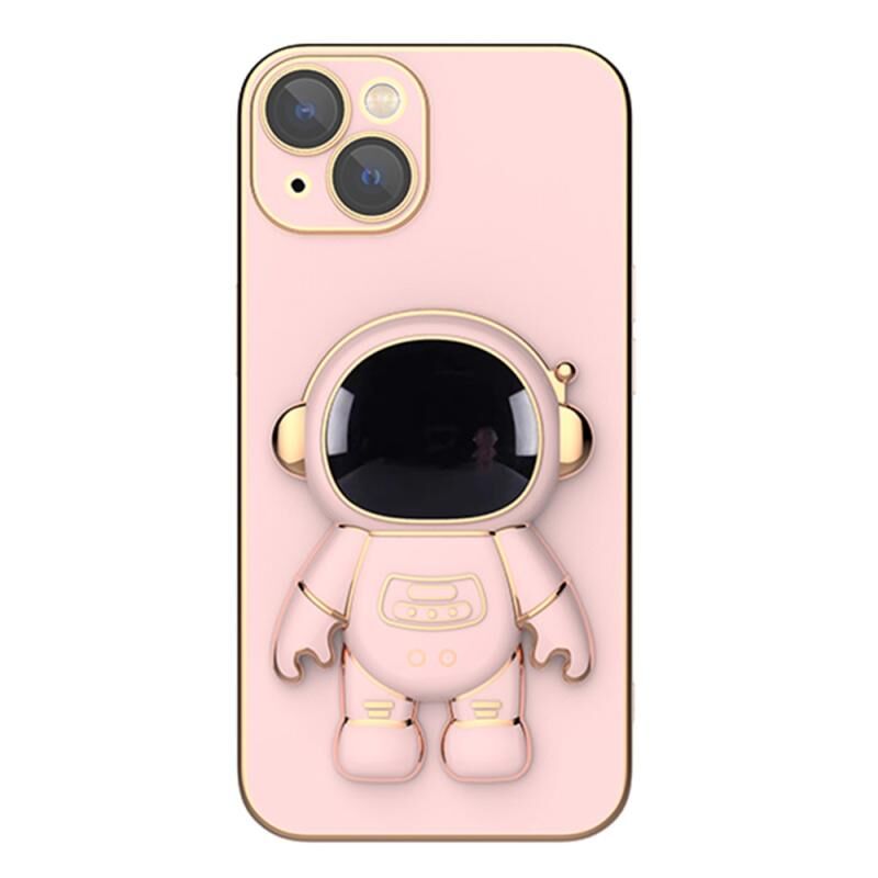 For iPhone 11 Plating Astronaut Holder Phone Case with Lens Film (Pink)