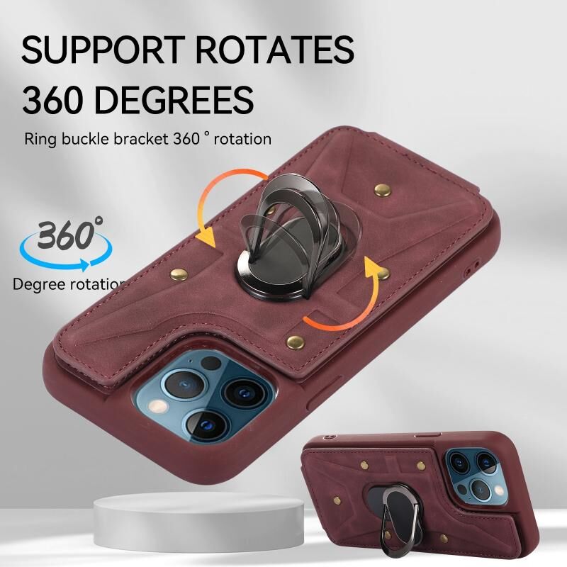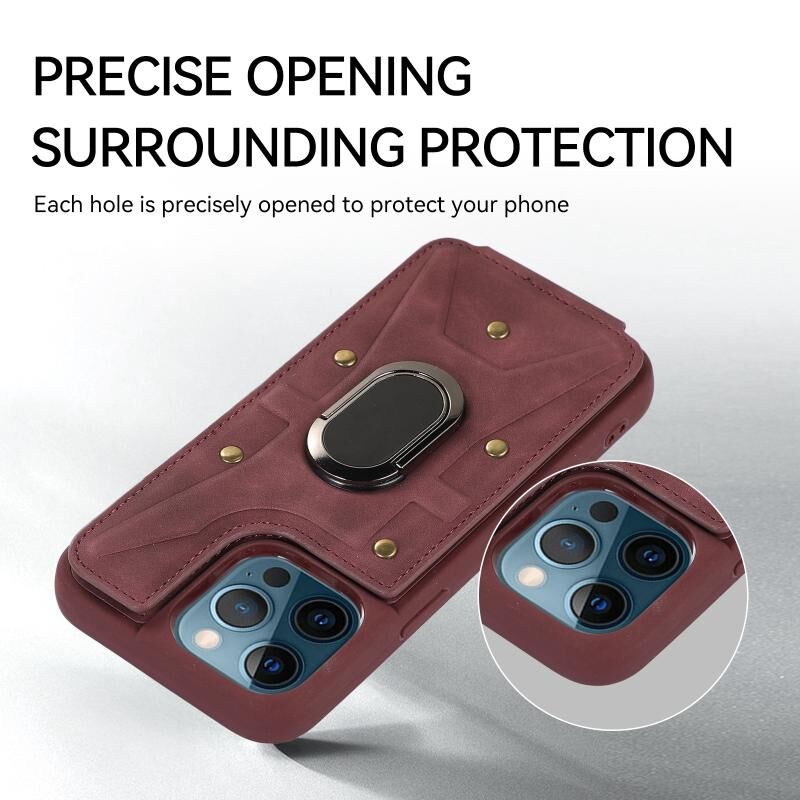 For iPhone 11 Pro Armor Ring Wallet Back Cover Phone Case(Wine Red)
