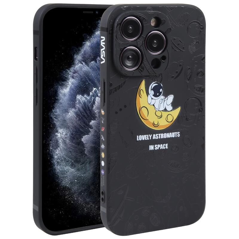 Θήκη τηλεφώνου για iPhone 11 Pro, σιλικόνης, με σχέδιο αστροναύτη και ευθείες άκρες (Αστροναύτης Άρη - Μαύρο)