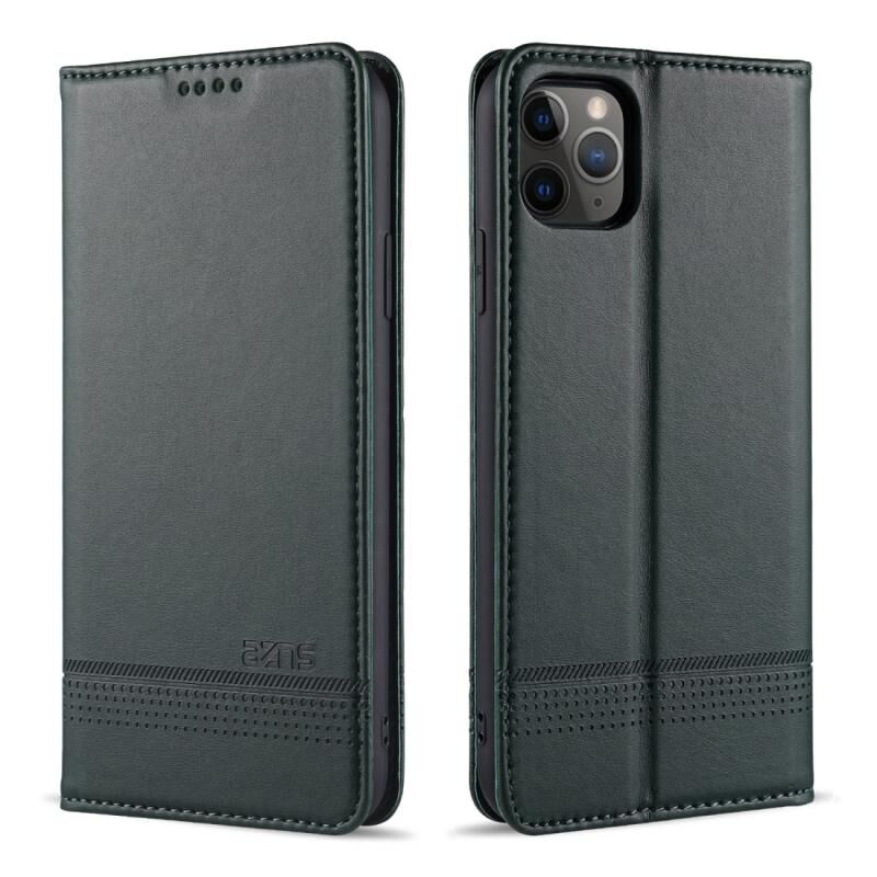 Θήκη δέρματος οριζόντιας αναδίπλωσης με μαγνητικό κλείσιμο και υφή μοσχαριού για iPhone 11 Pro AZNS, με θήκες για κάρτες, στήριξη και λειτουργία πορτοφολιού (Σκούρο Καφέ) (AZNS)