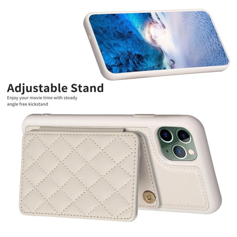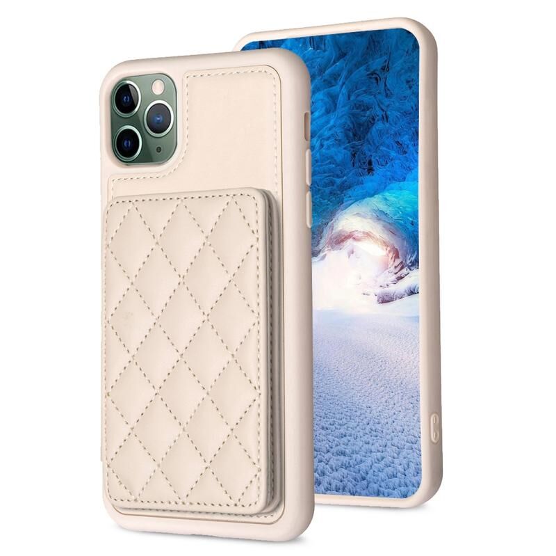 For iPhone 11 Pro BF25 Square Plaid Card Bag Holder Phone Case(Beige)