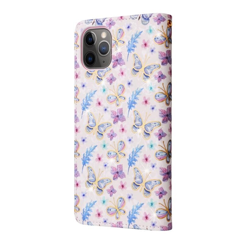 Θήκη δερμάτινη με σχέδιο μπρονζέ ζωγραφικής για iPhone 11 Pro (Βιολέτες) με προστασία RFID.