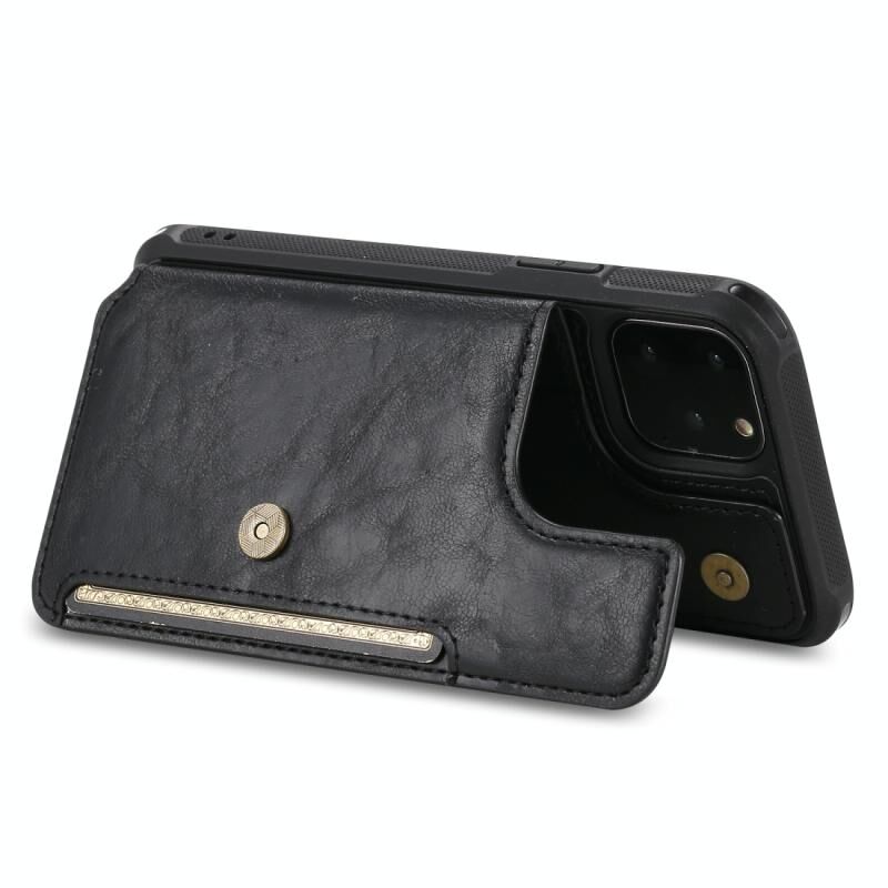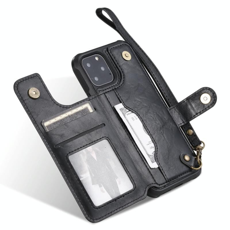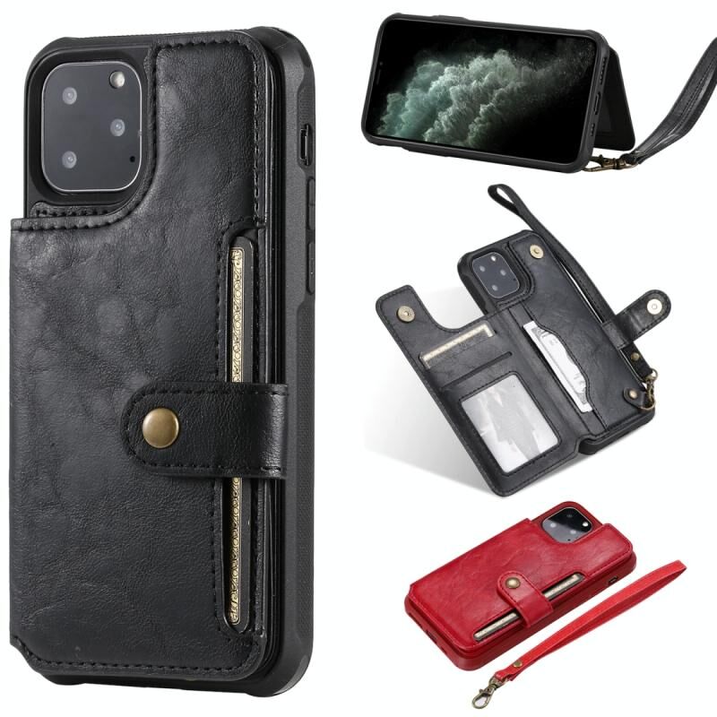 For iPhone 11 Pro Buckle Zipper Shockproof Protective Case with Holder & Card Slots & Wallet & Lanyard & Photos Frame(Black)
