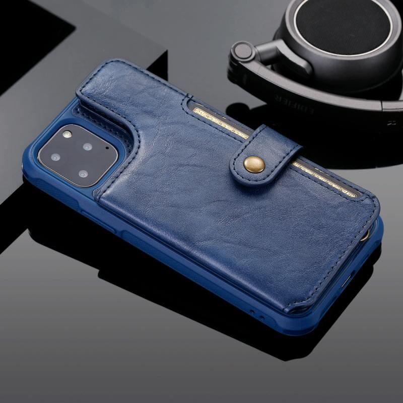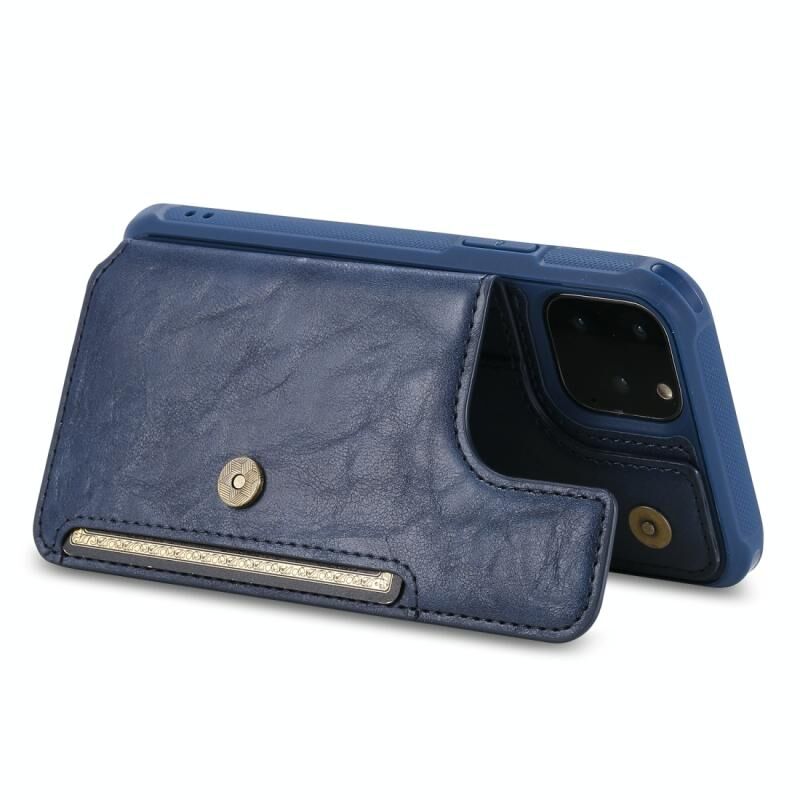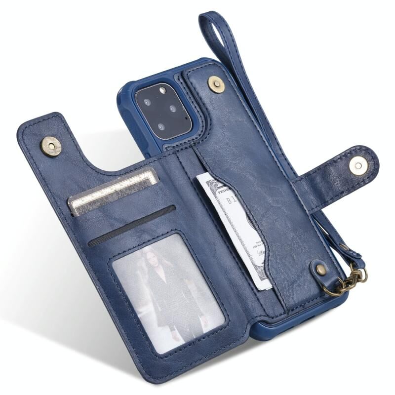For iPhone 11 Pro Buckle Zipper Shockproof Protective Case with Holder & Card Slots & Wallet & Lanyard & Photos Frame(Blue)