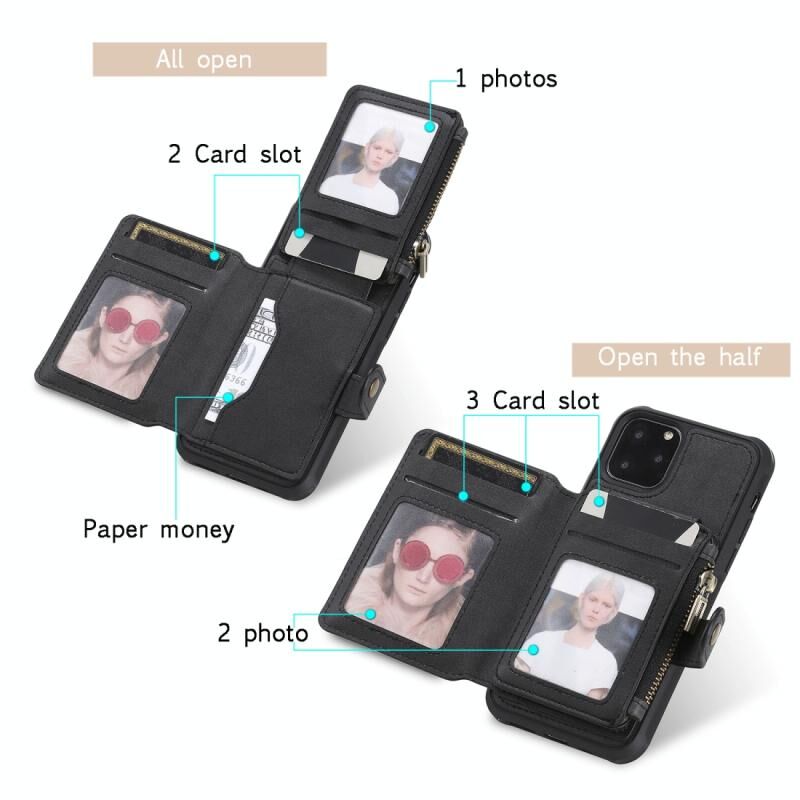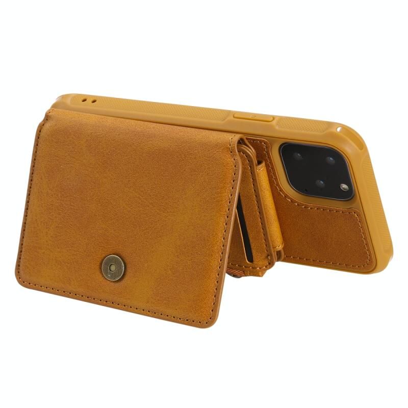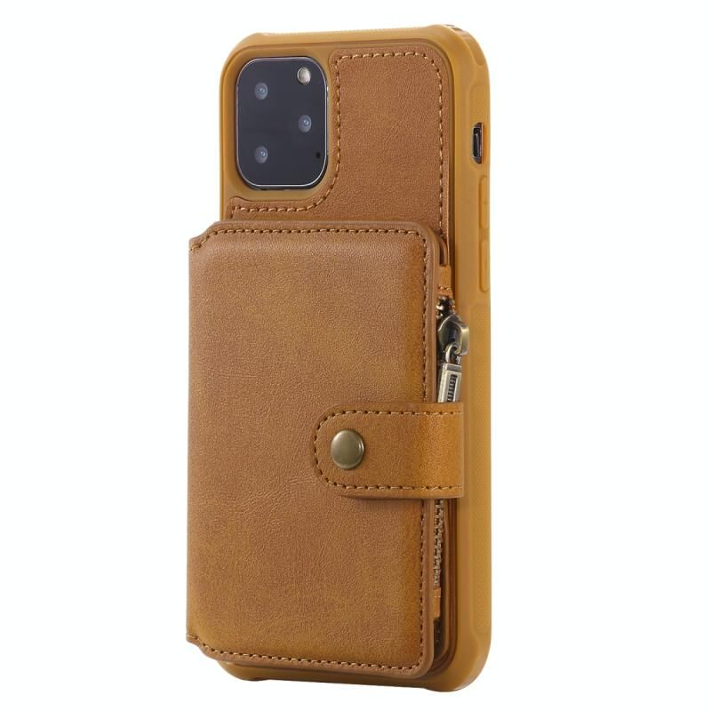 For iPhone 11 Pro Buckle Zipper Shockproof Protective Case with Holder & Card Slots & Wallet & Lanyard & Photos Frames(Brown)