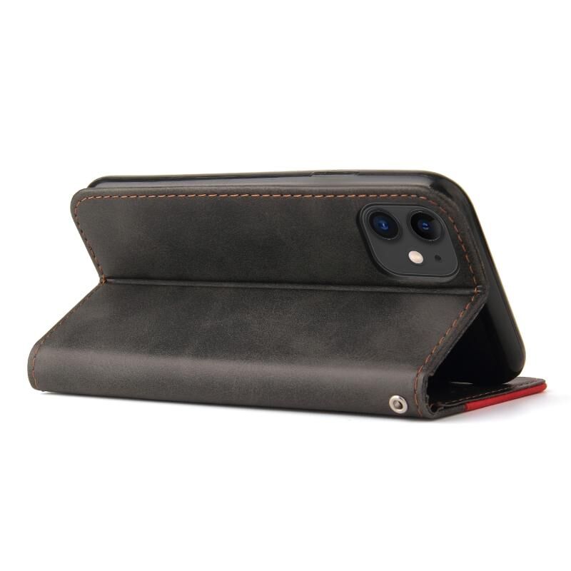Θήκη για iPhone 11 Pro, επαγγελματική με ραφές, οριζόντια, αναδιπλούμενη από δερματίνη PU με βάση, θήκες για κάρτες & κορνίζα φωτογραφιών (Κόκκινη)