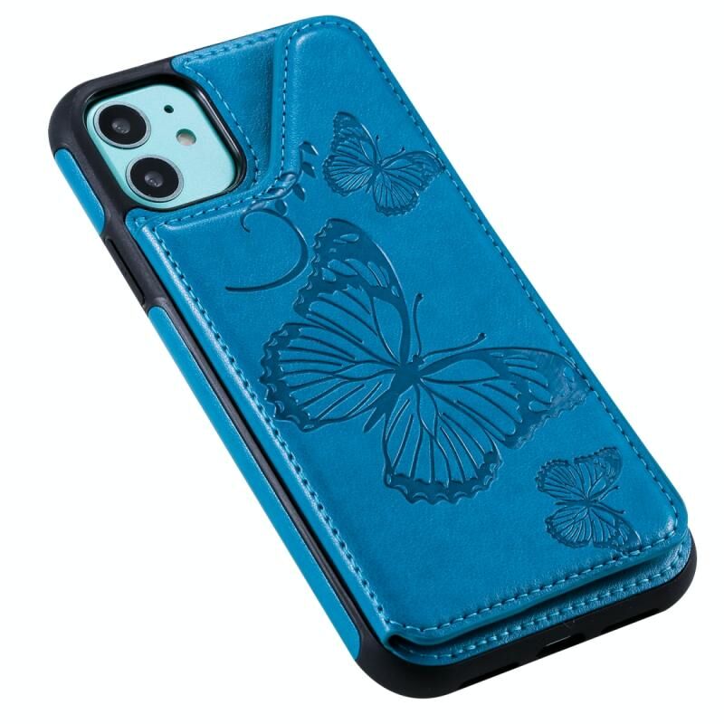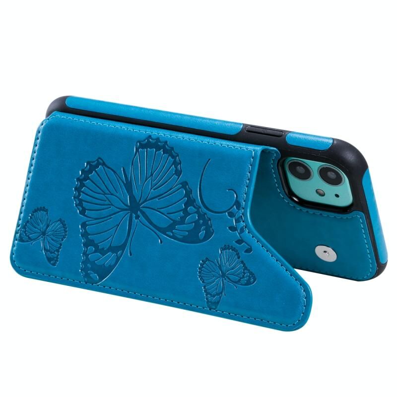 For iPhone 11 Pro Butterfly Embossing Pattern Shockproof Protective Case with Holder & Card Slots & Photo Frame(Blue)