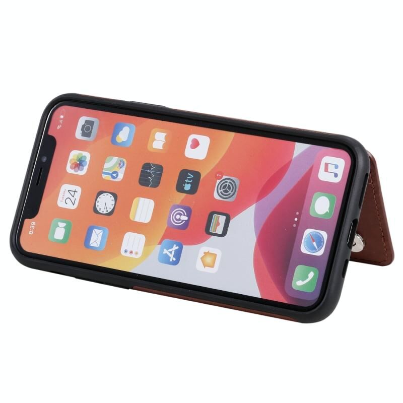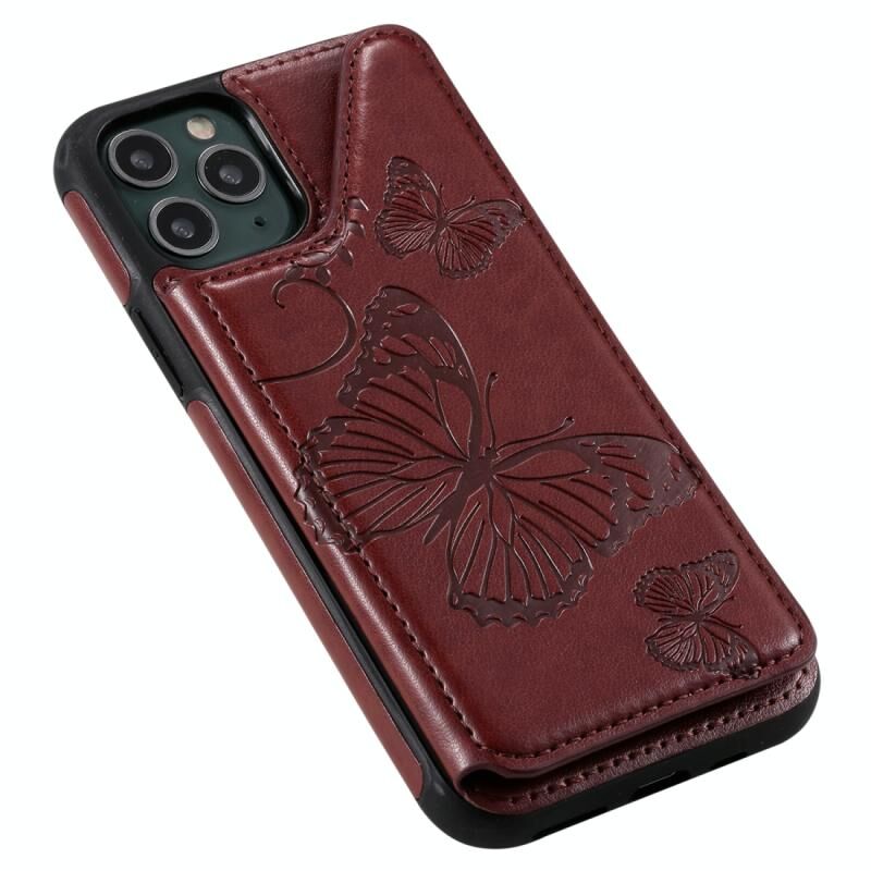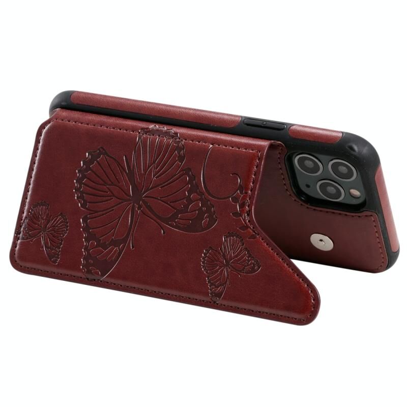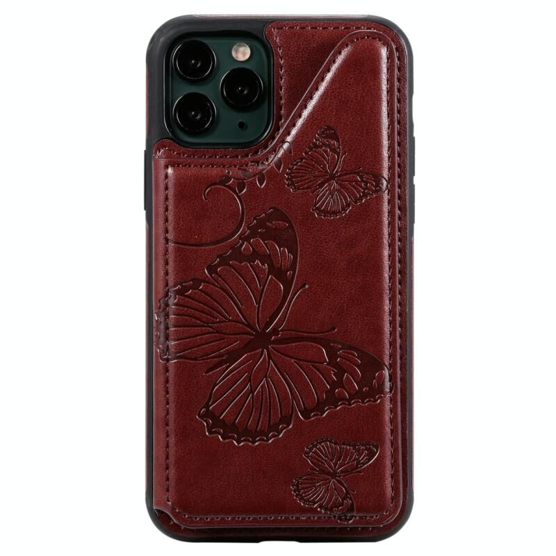 For iPhone 11 Pro Butterfly Embossing Pattern Shockproof Protective Case with Holder & Card Slots & Photo Frame(Brown)
