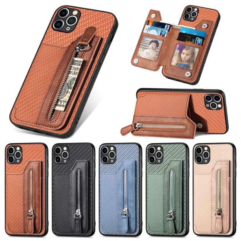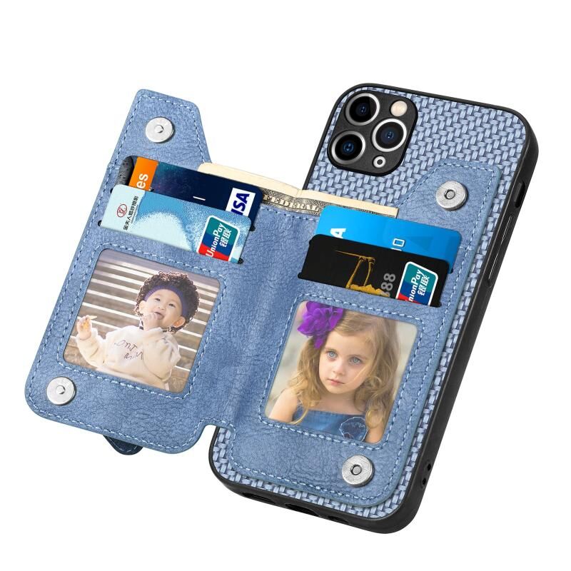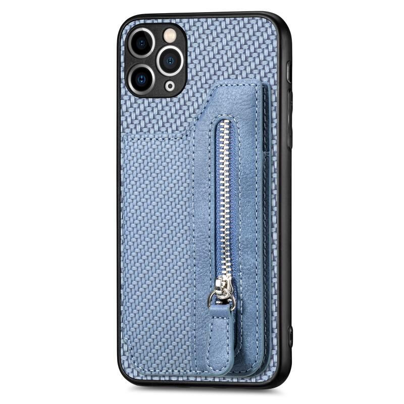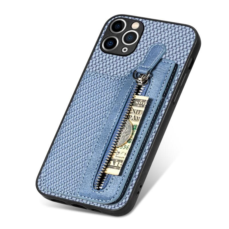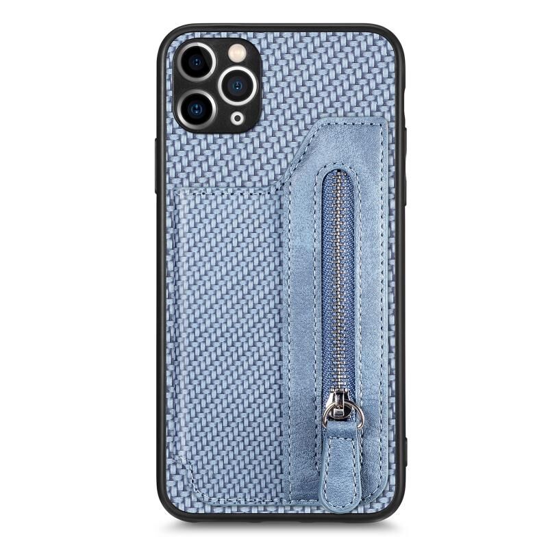 For iPhone 11 Pro Carbon Fiber Horizontal Flip Zipper Wallet Phone Case(Blue)