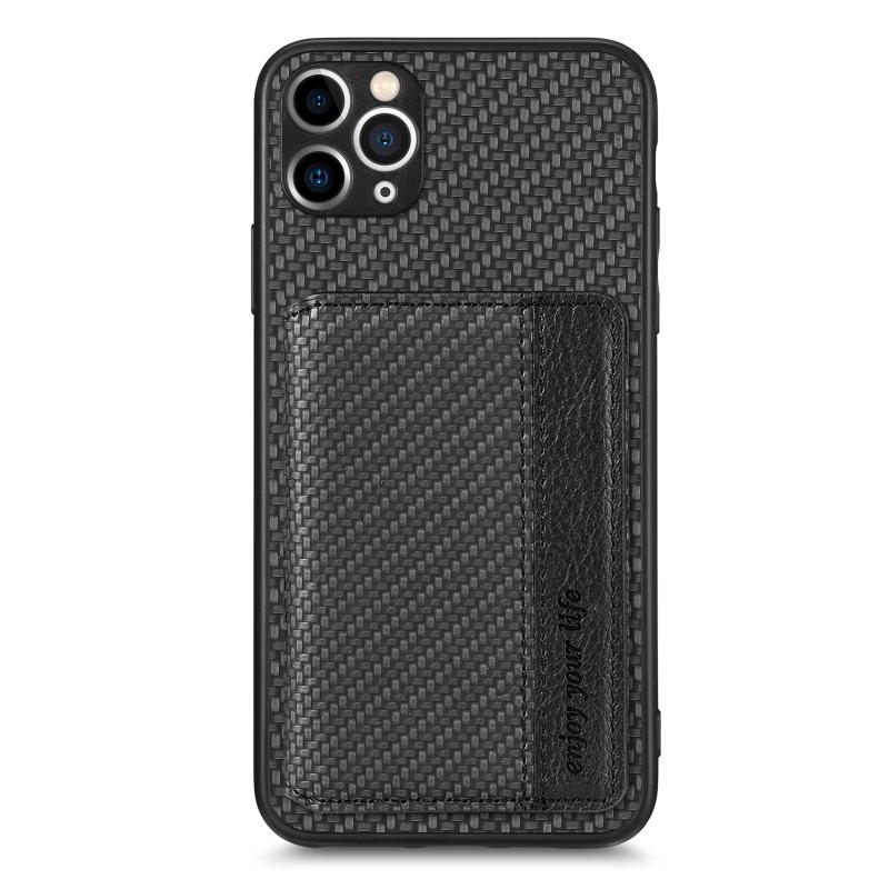 For iPhone 11 Pro Carbon Fiber Magnetic Card Bag Phone Case(Black)