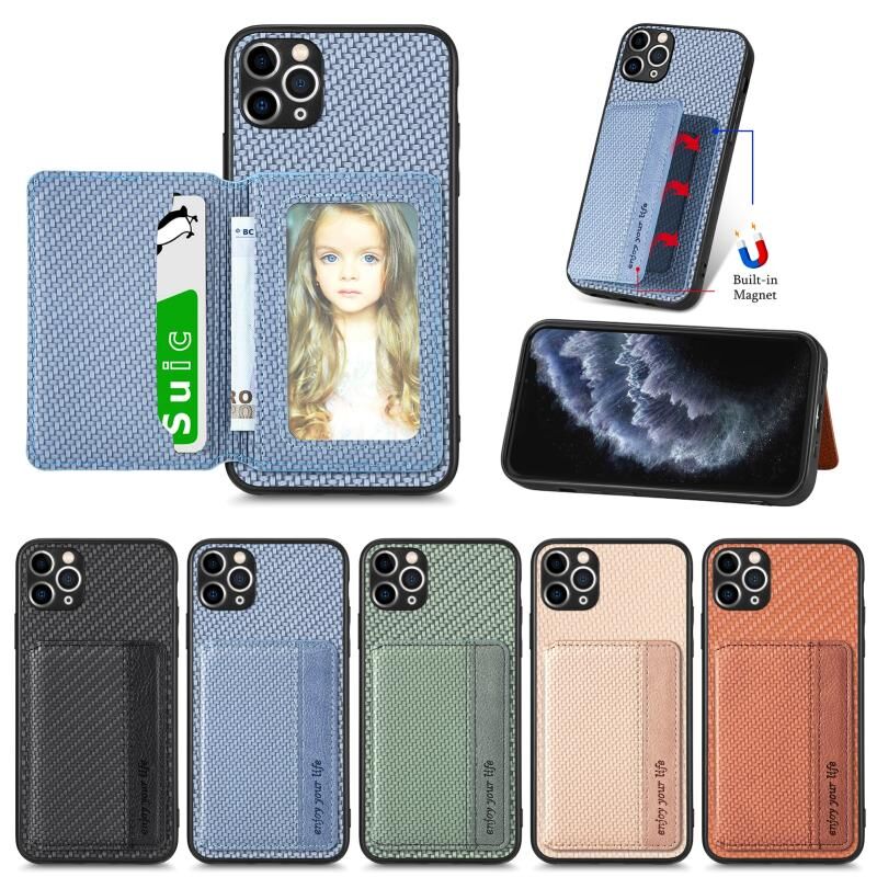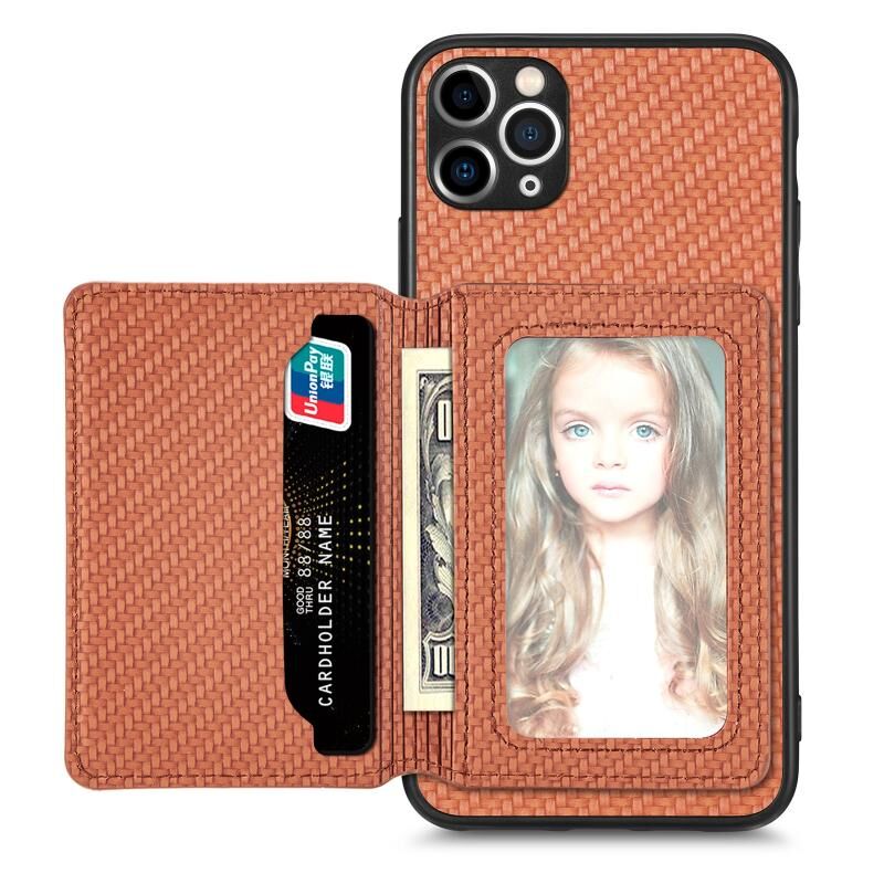 Θήκη τηλεφώνου με μαγνητική τσέπη για κάρτες από ανθρακονήματα για iPhone 11 Pro (Μαύρο)