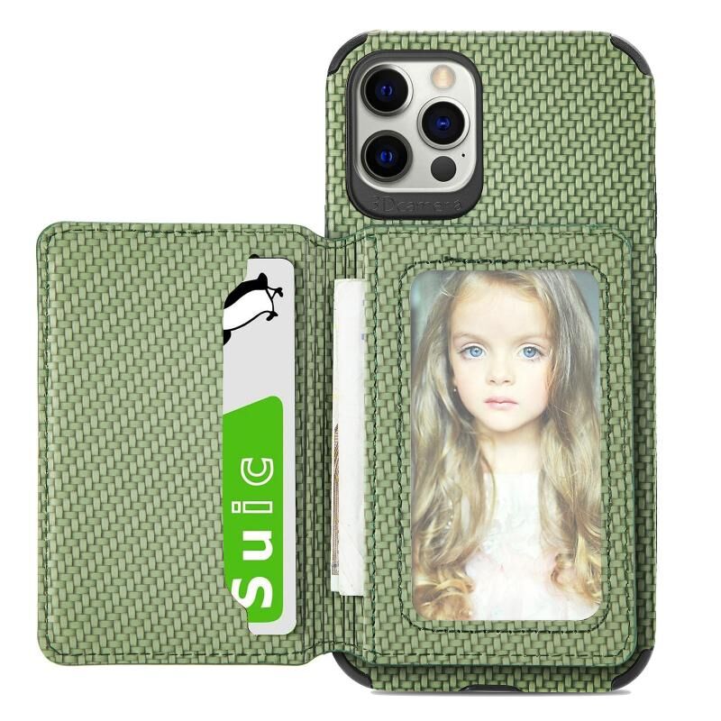 Θήκη για iPhone 11 Pro από ανθρακονήματα με μαγνητική τσέπη για κάρτες, TPU+PU αντικραδασμική προστασία πλάτης με βάση στήριξης & θήκη για κάρτες & κορνίζα φωτογραφιών (Μαύρο)