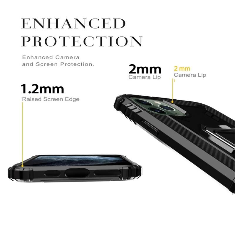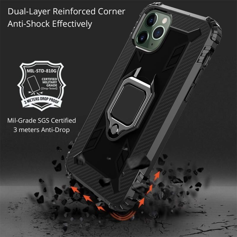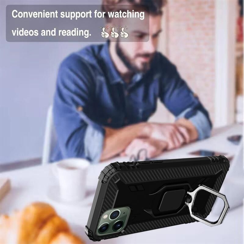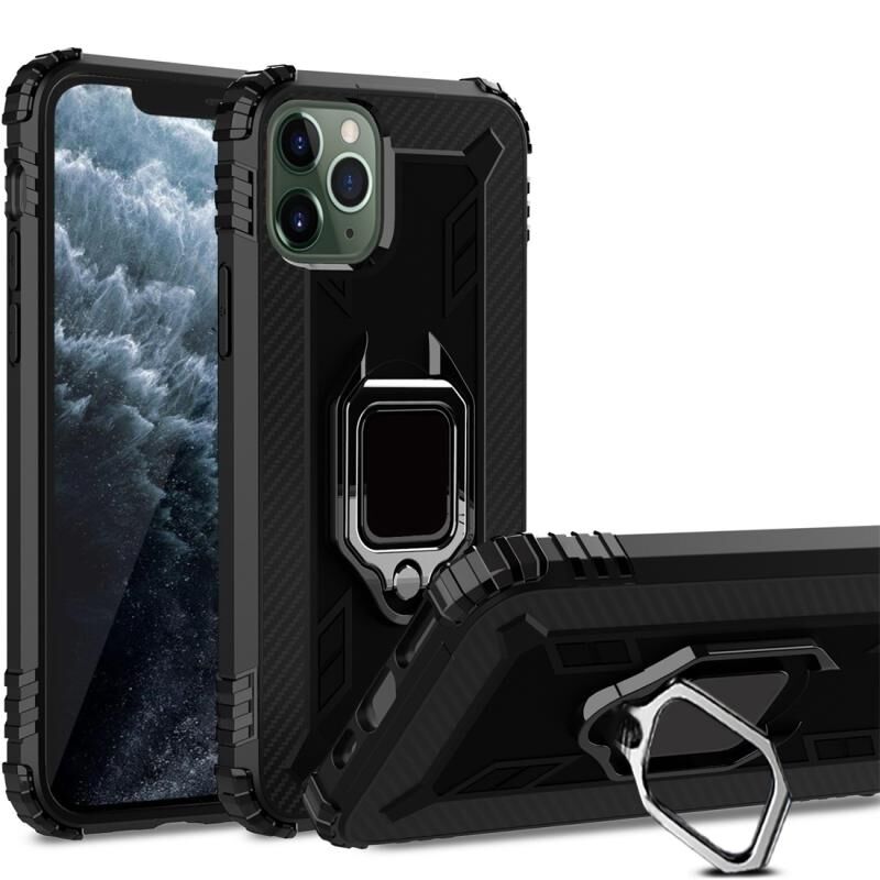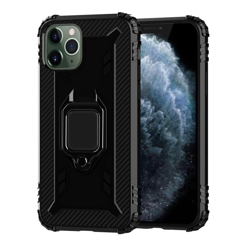 Θήκη προστασίας από ανθρακονήματα για iPhone 11 Pro με περιστρεφόμενη βάση δακτυλιδιού 360 μοιρών (Μαύρο)