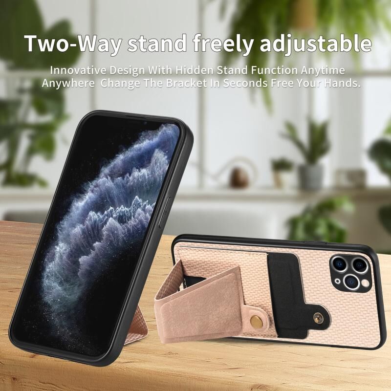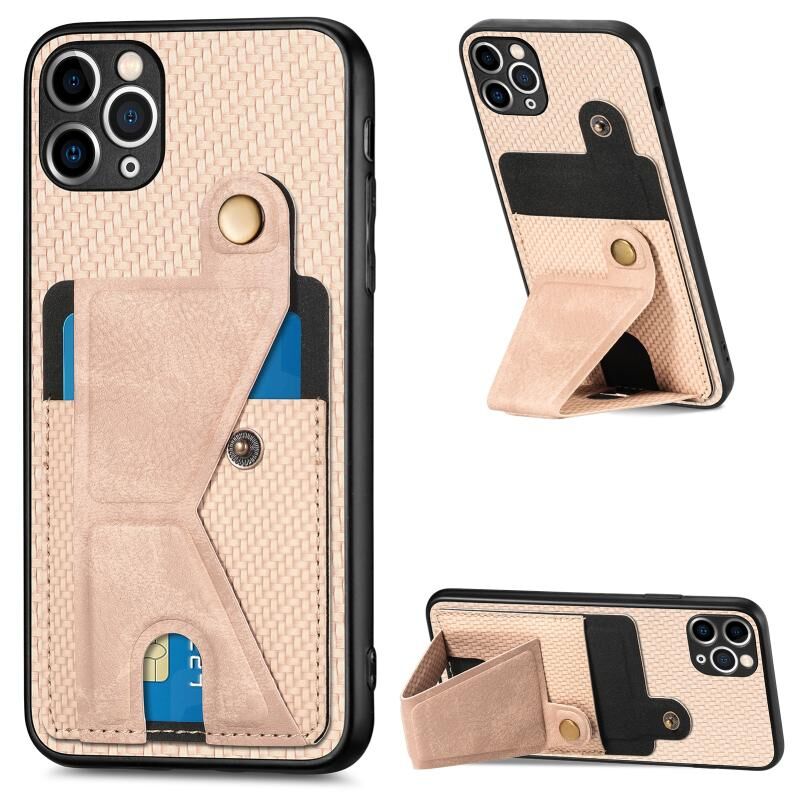 For iPhone 11 Pro Carbon Fiber Wallet Flip Card K-shaped Holder Phone Case(Khaki)