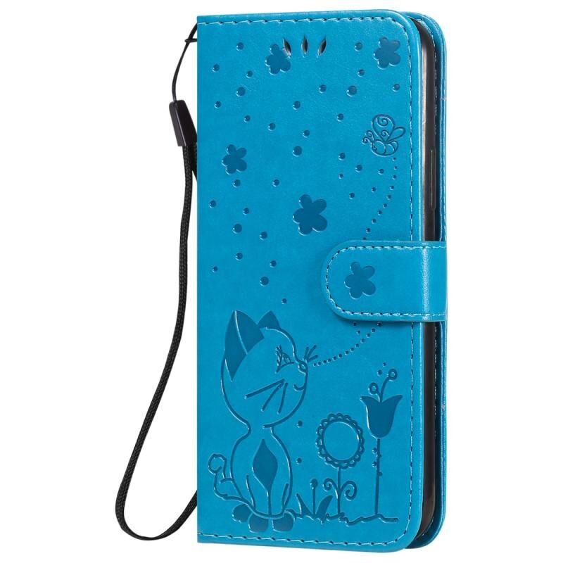 For iPhone 11 Pro Cat Bee Embossing Pattern Shockproof Horizontal Flip Leather Case with Holder & Card Slots & Wallet(Blue)