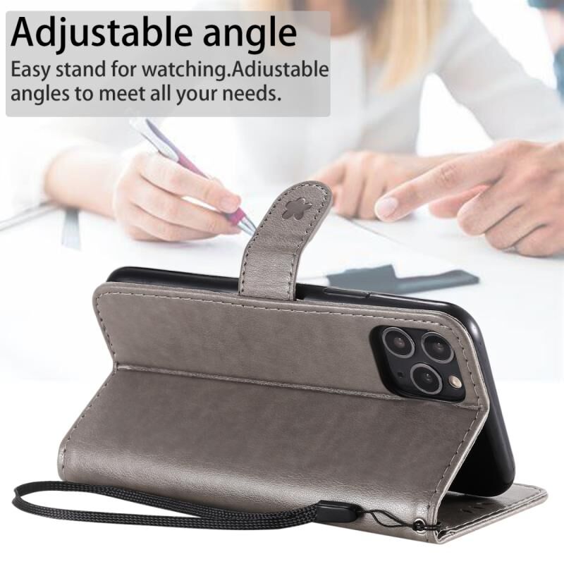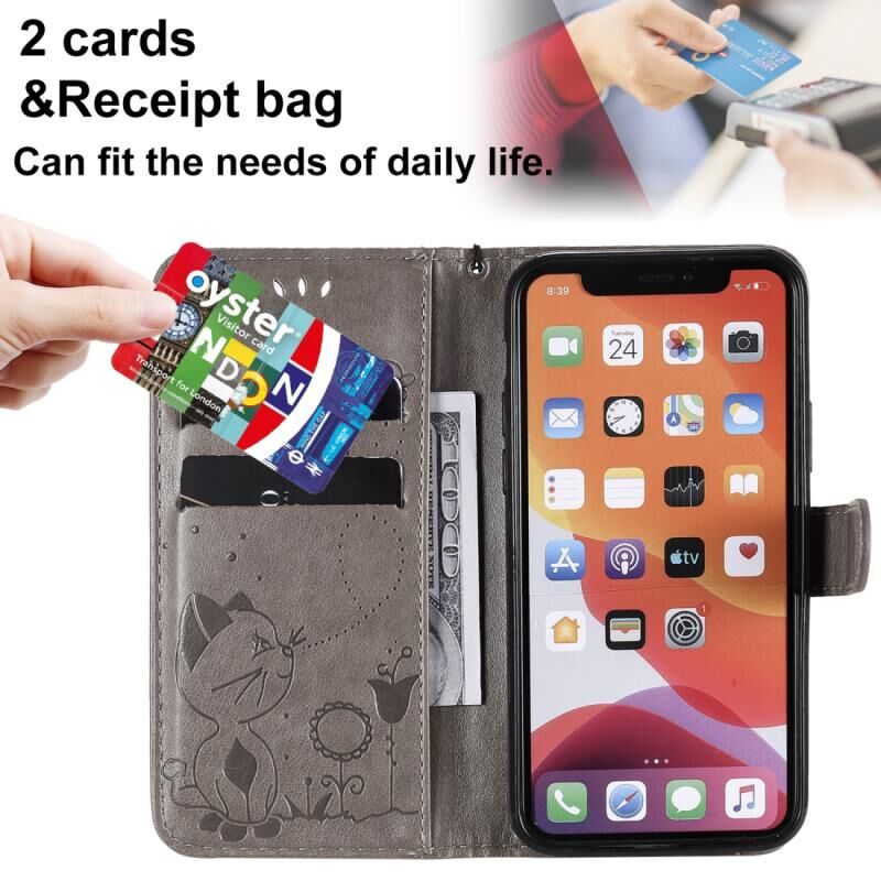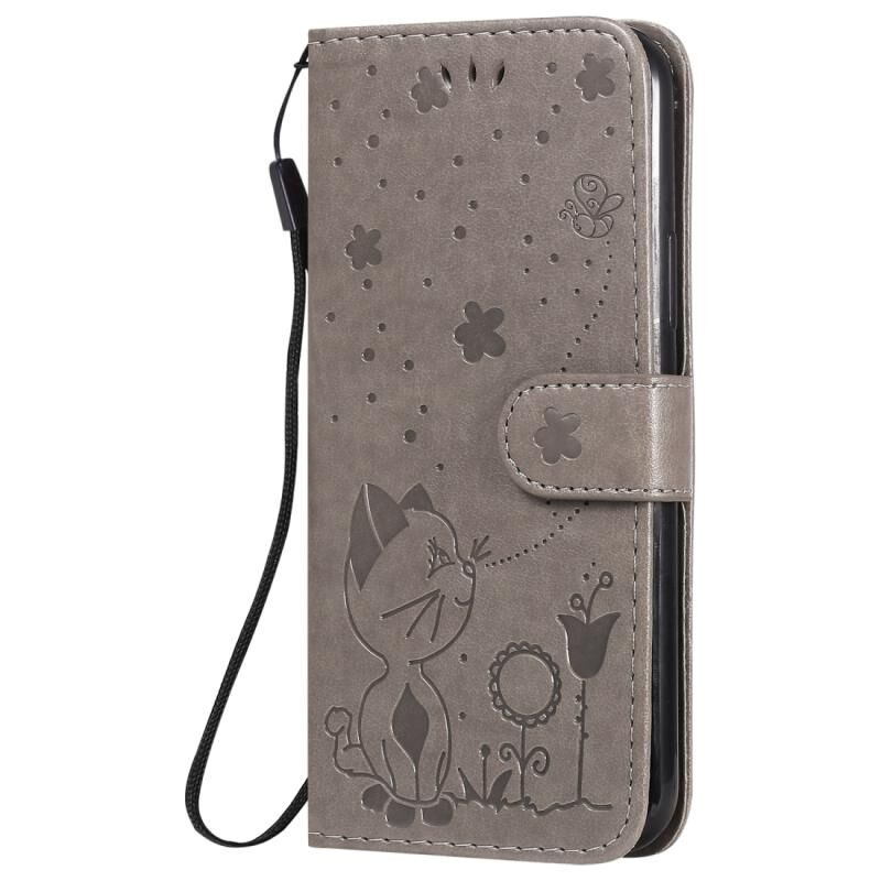 For iPhone 11 Pro Cat Bee Embossing Pattern Shockproof Horizontal Flip Leather Case with Holder & Card Slots & Wallet(Grey)